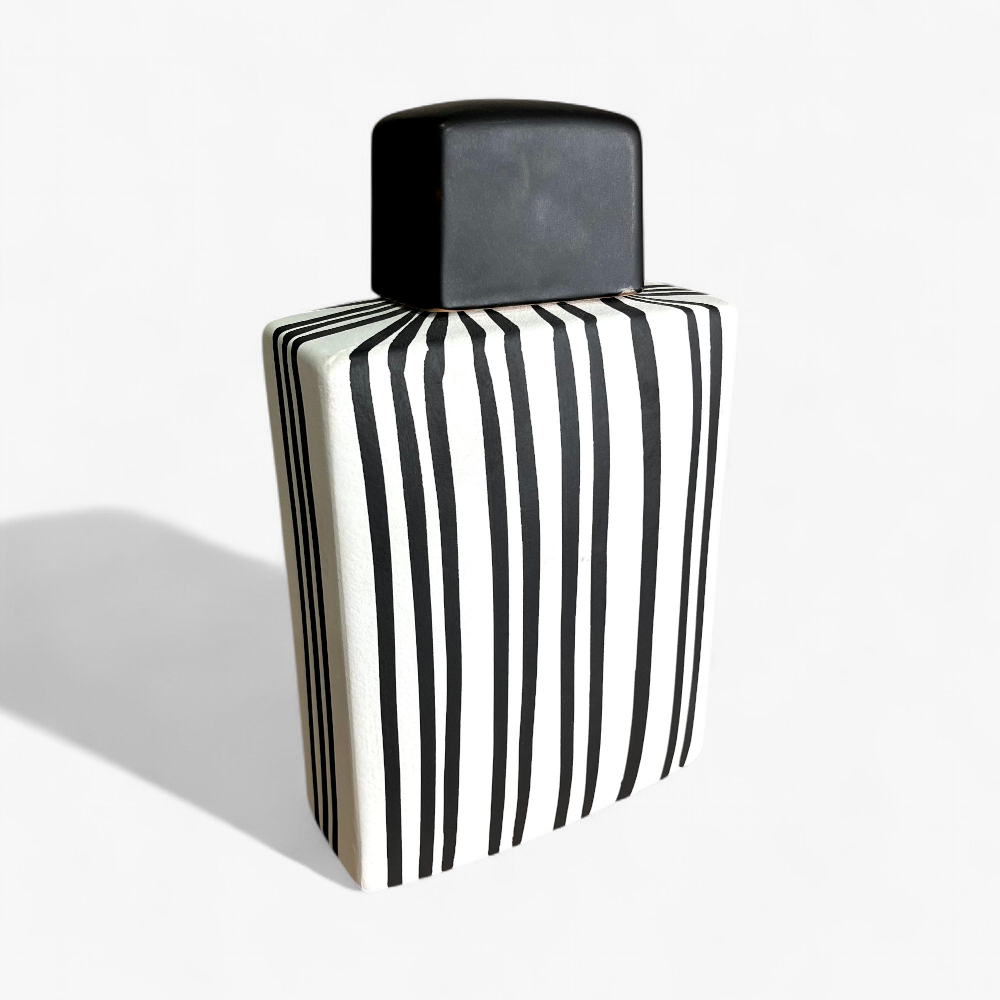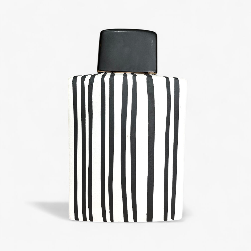 El Centro de Mesa FA-D2102A de 30 cm es una declaración audaz de diseño contemporáneo. Inspirado en la estética de las pasarelas de alta costura y la elegancia del blanco y negro, esta pieza de cerámica con patrón de rayas verticales estiliza cualquier espacio al instante. Su imponente tamaño y forma geométrica evocan la silueta de un perfume de autor, convirtiéndola en el complemento perfecto para ambientes modernos, minimalistas o art déco.