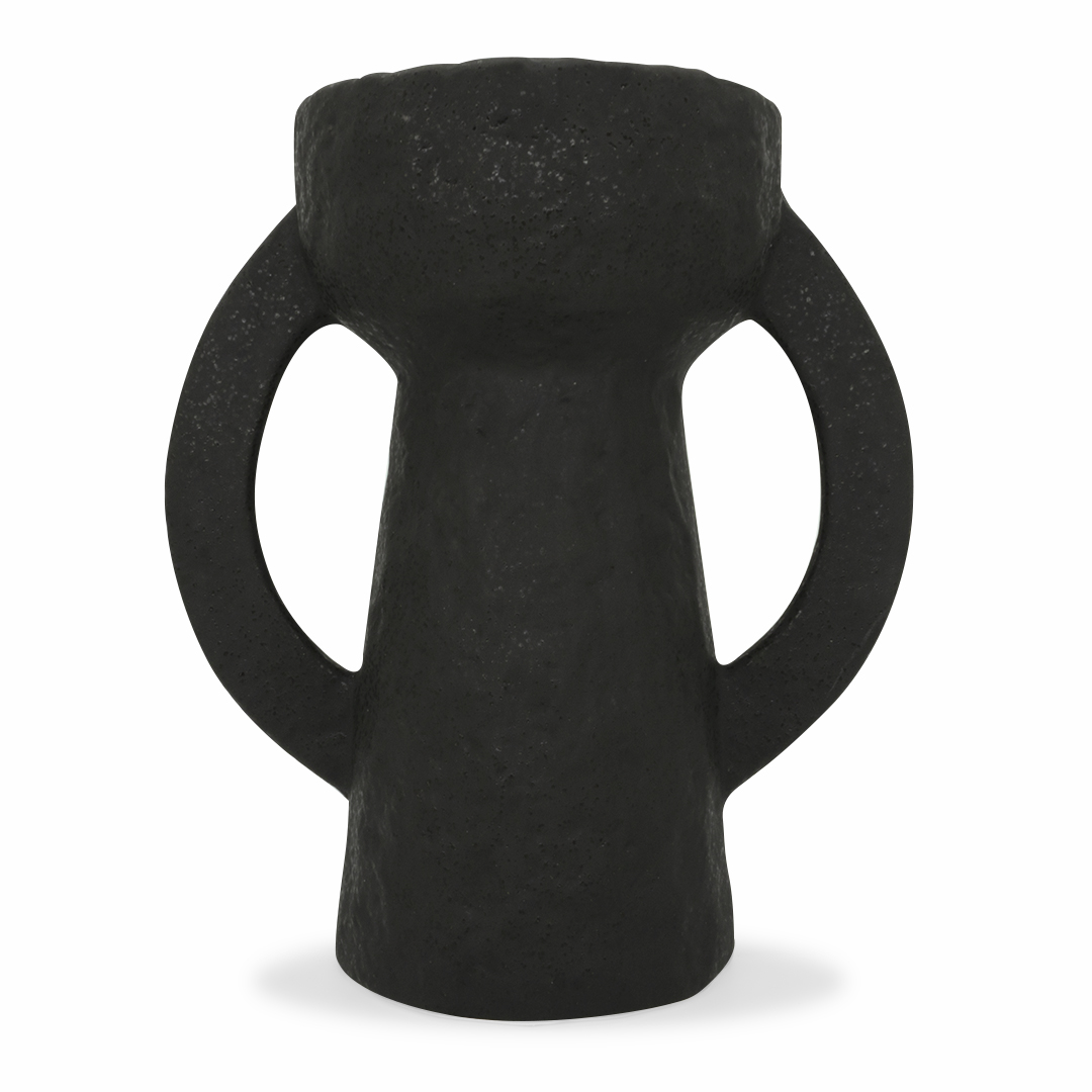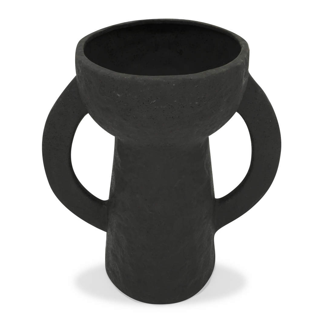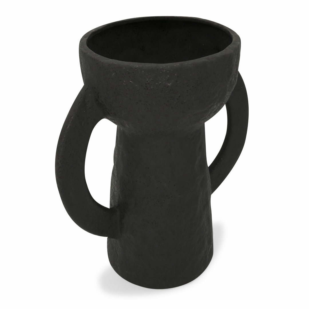 Con líneas fluidas y un acabado en negro, estas piezas se presentan como una reinterpretación de los clásicos floreros o jarrones. Su diseño versátil las convierte en protagonistas en cualquier ambiente, ya sea como centro de mesa o elemento decorativo en espacios minimalistas y refinados.