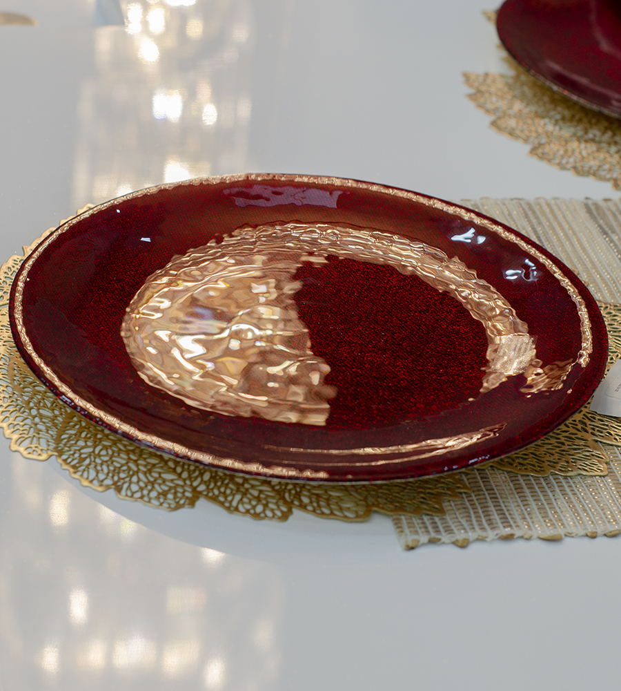 Hermoso Plato decorativo de color Rojo con un Diámetro de 33 cms